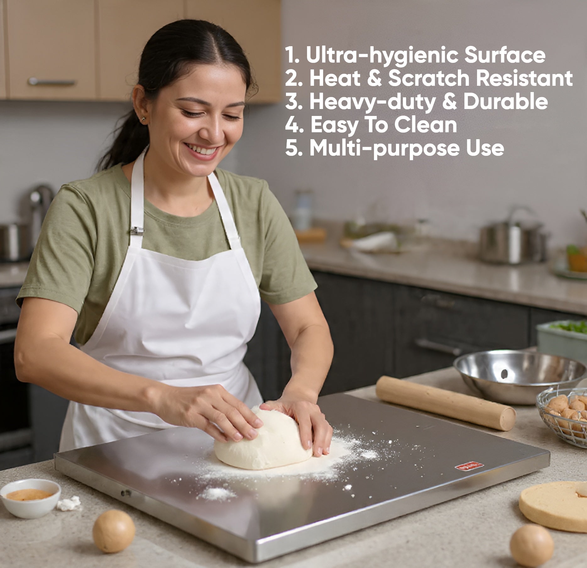 EziClean Multi-Purpose Stainless Steel Kitchen Board – Heavy-Duty Anti-Bacterial Mat for Chopping, Kneading Dough, Baking Prep & Heat Protection | Non-Slip & Easy-Clean